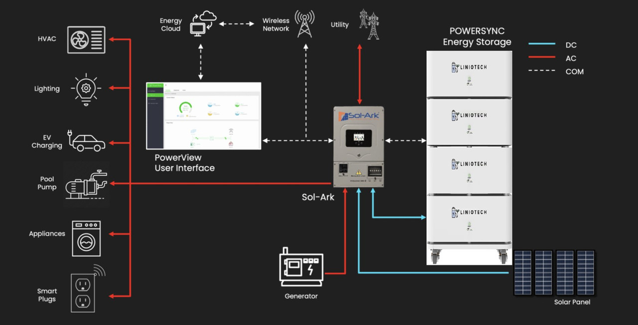 A family farm in North Carolina integrated Liniotech’s battery and inverter setup to store solar power for irrigation systems and evening power needs.